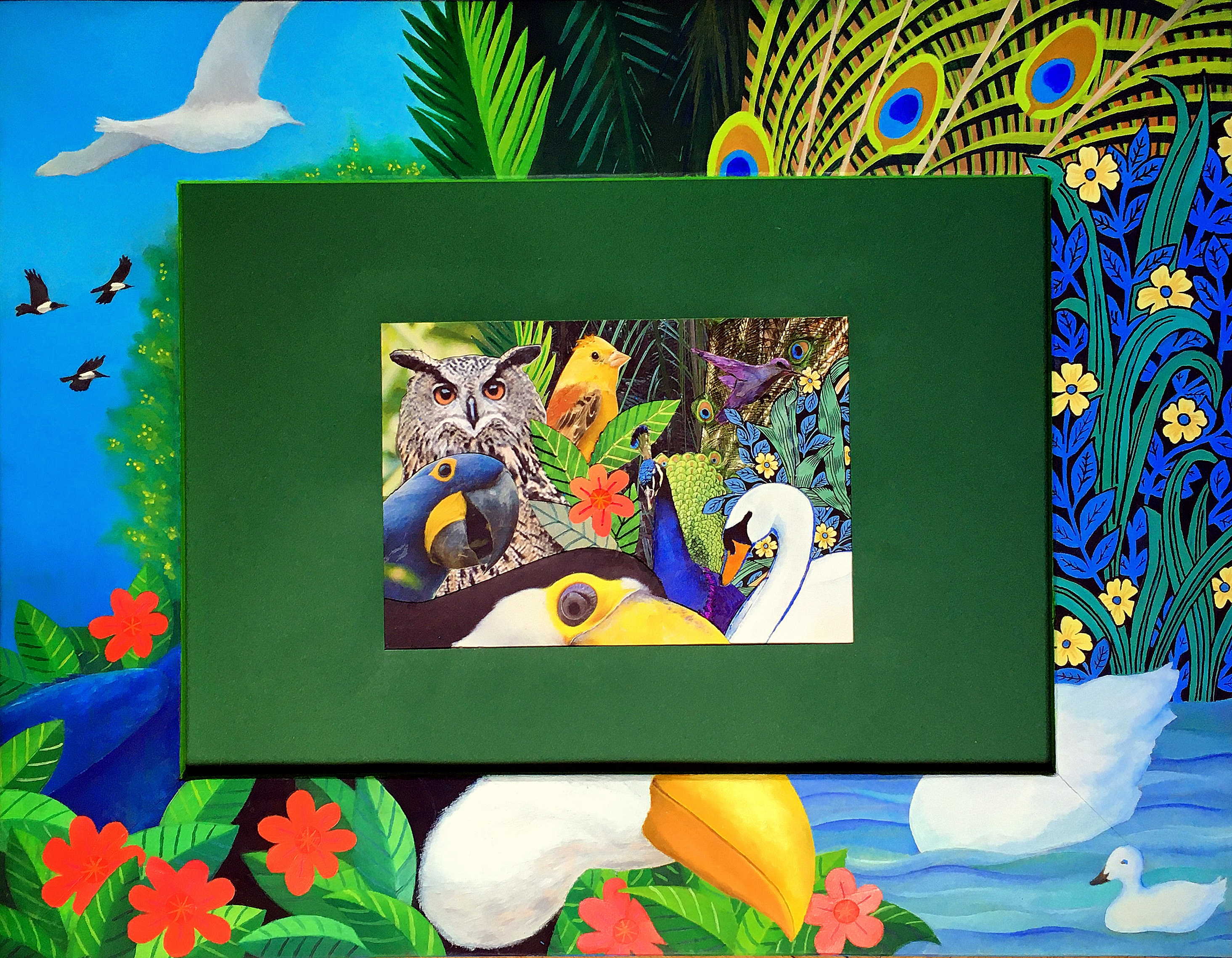 "mixed techniques" - where does the picture begin, where is the frame, where do the wondrous creatures escape into the far outside?